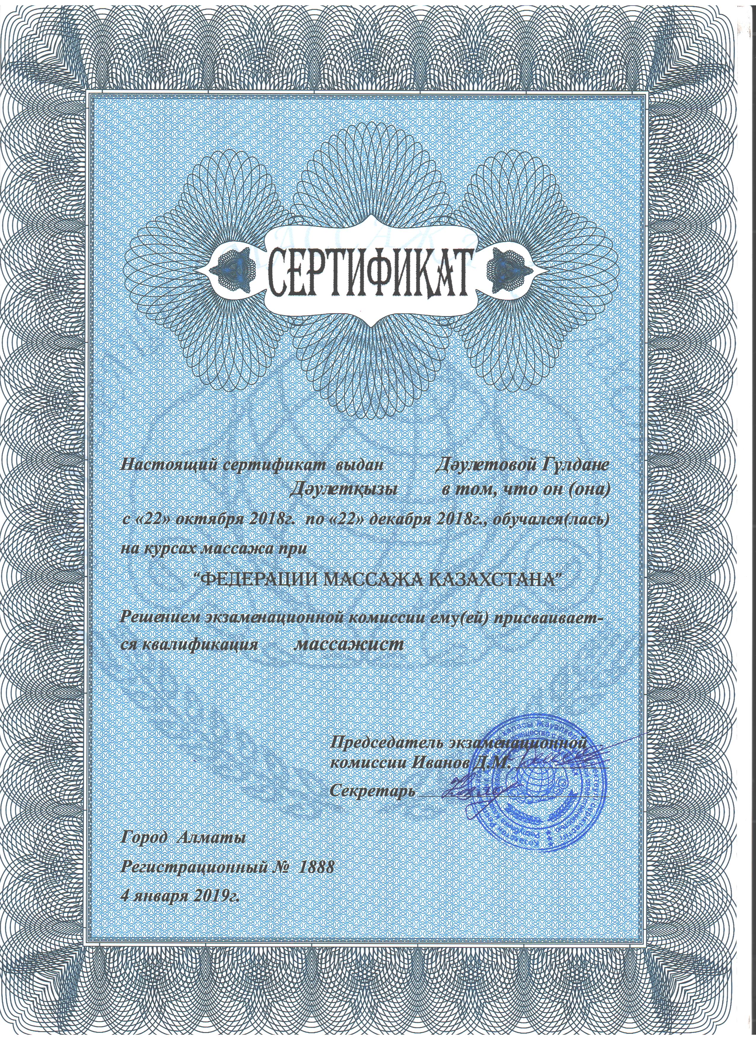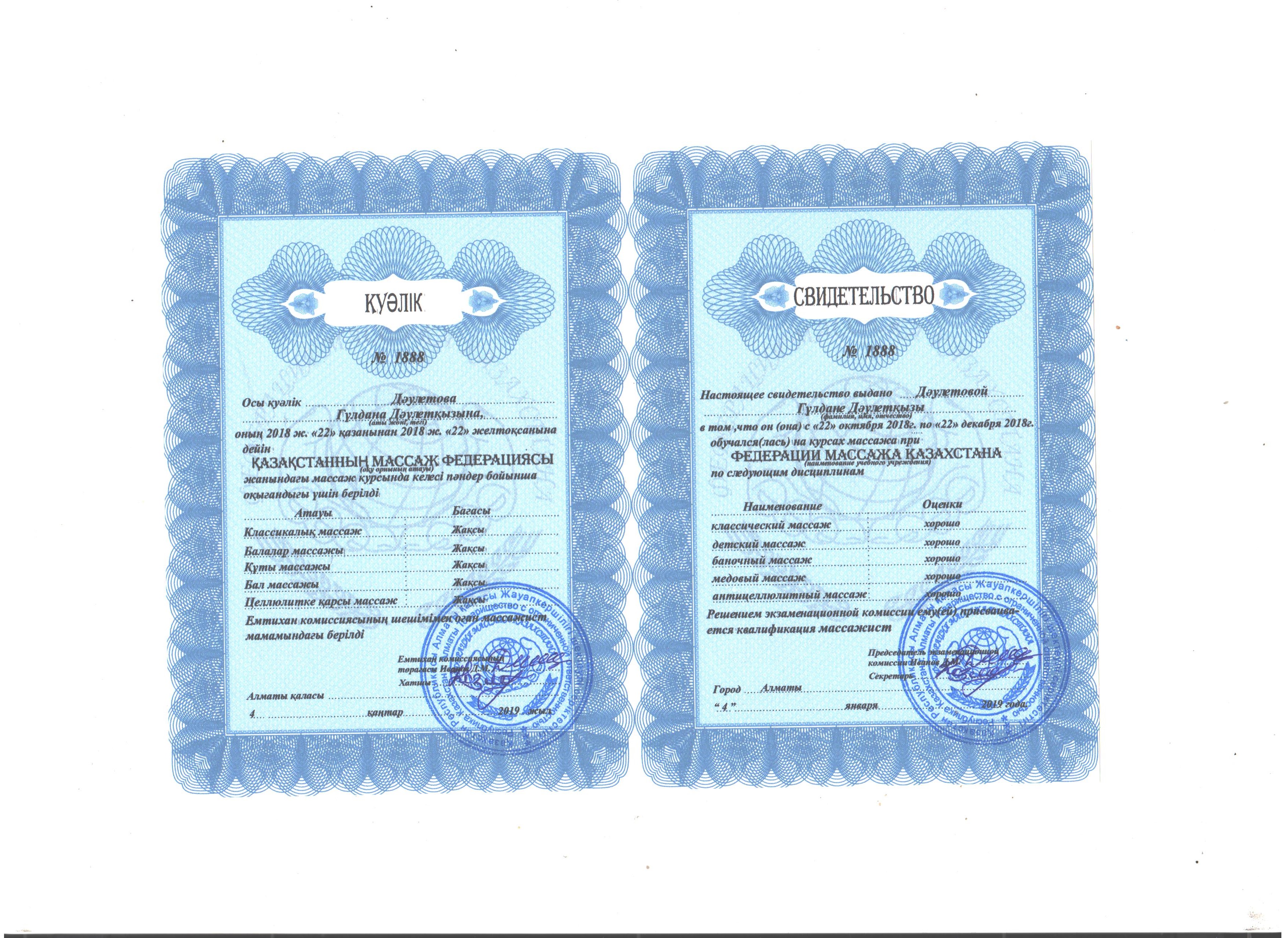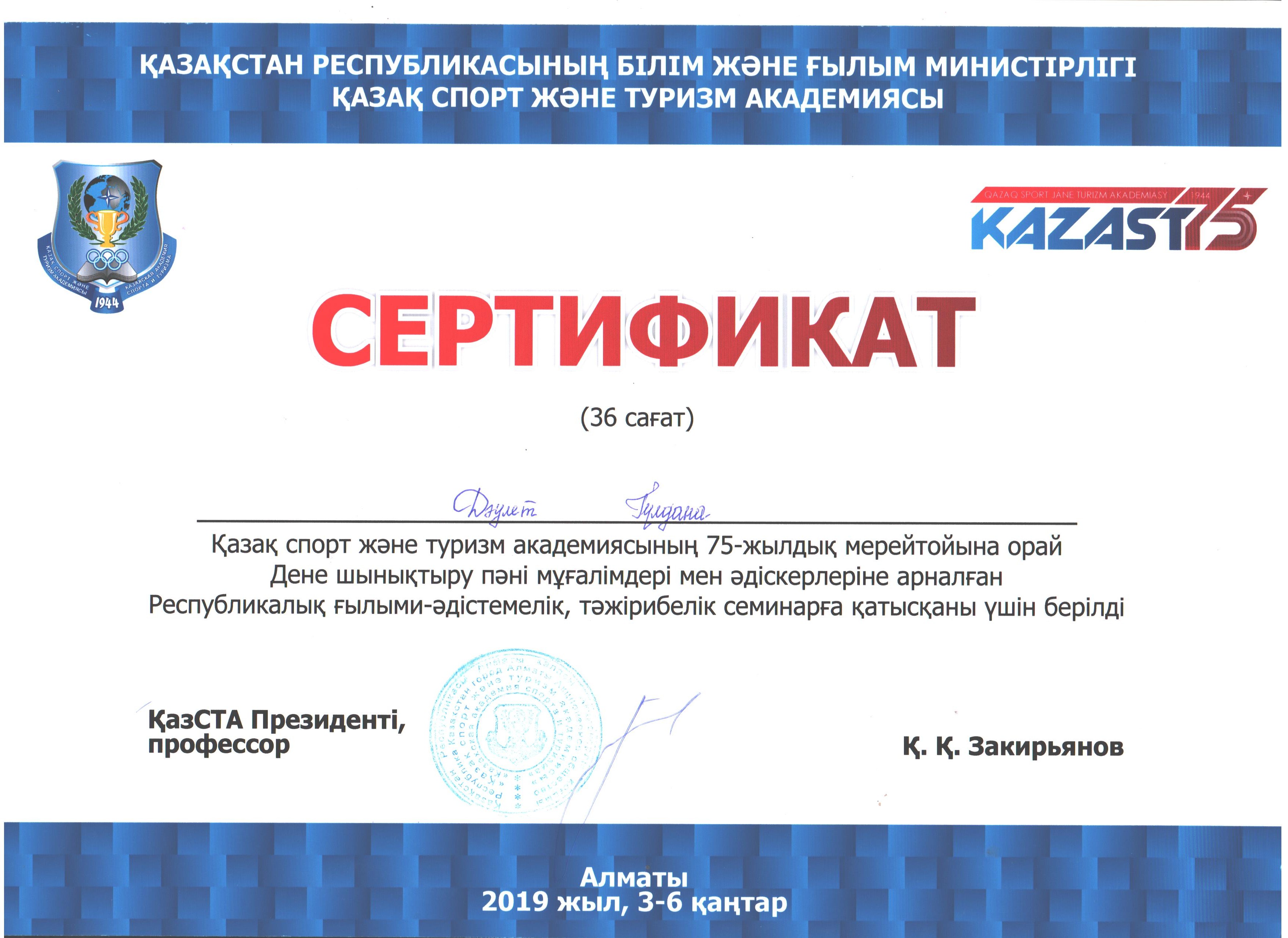 ДАУЛЕТ ГУЛЬДАНА ДАУЛЕТҚЫЗЫ Біліктілікті арттыру