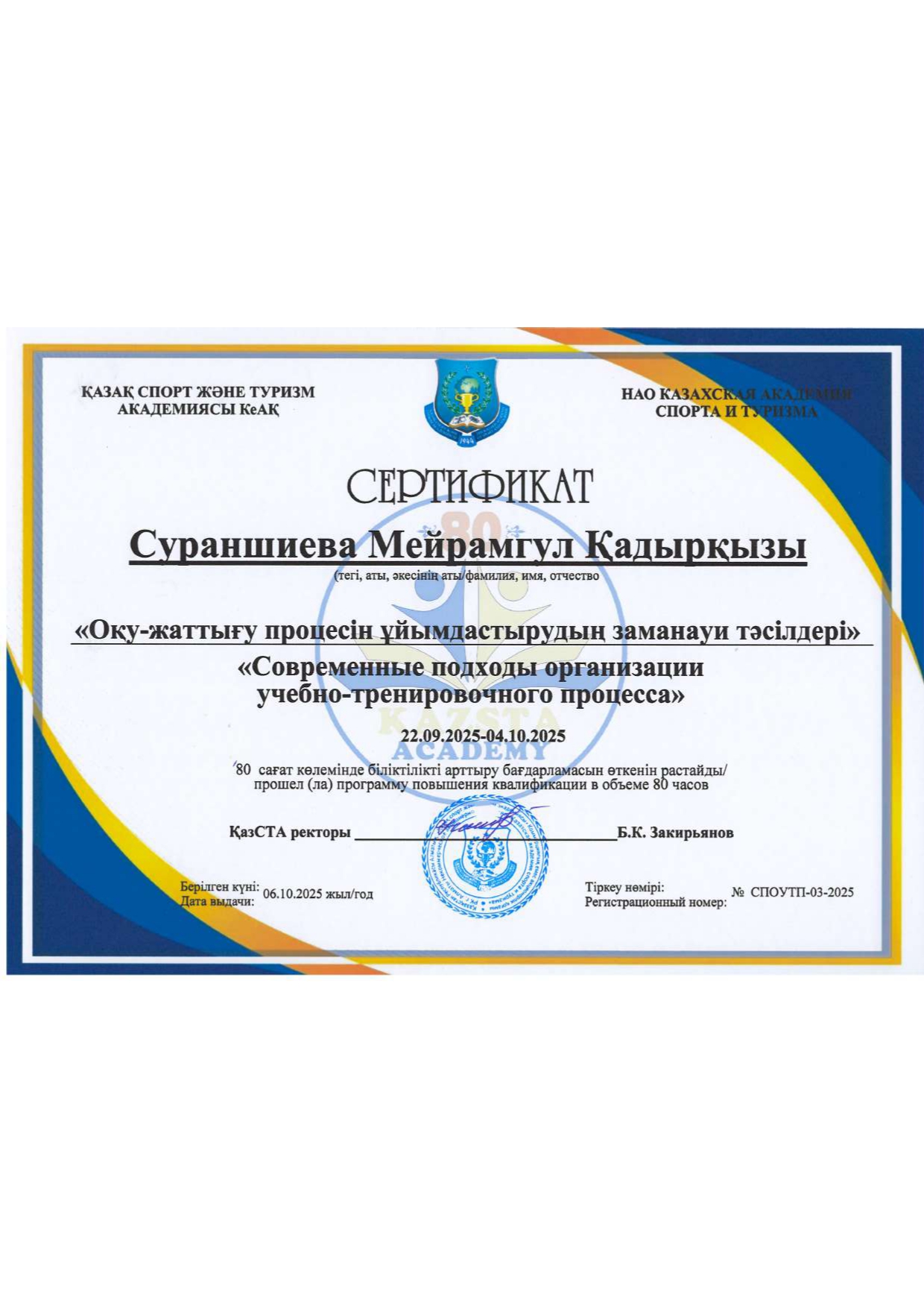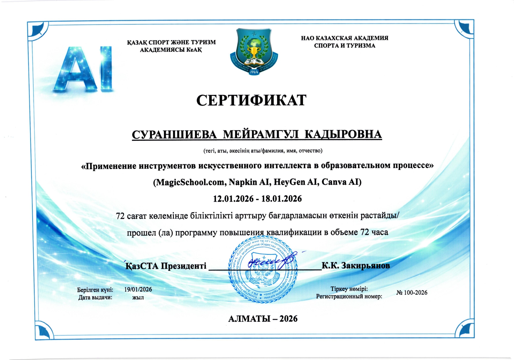 Суранчиева Мейрамгүл Қадырқызы біліктілігін арттыру