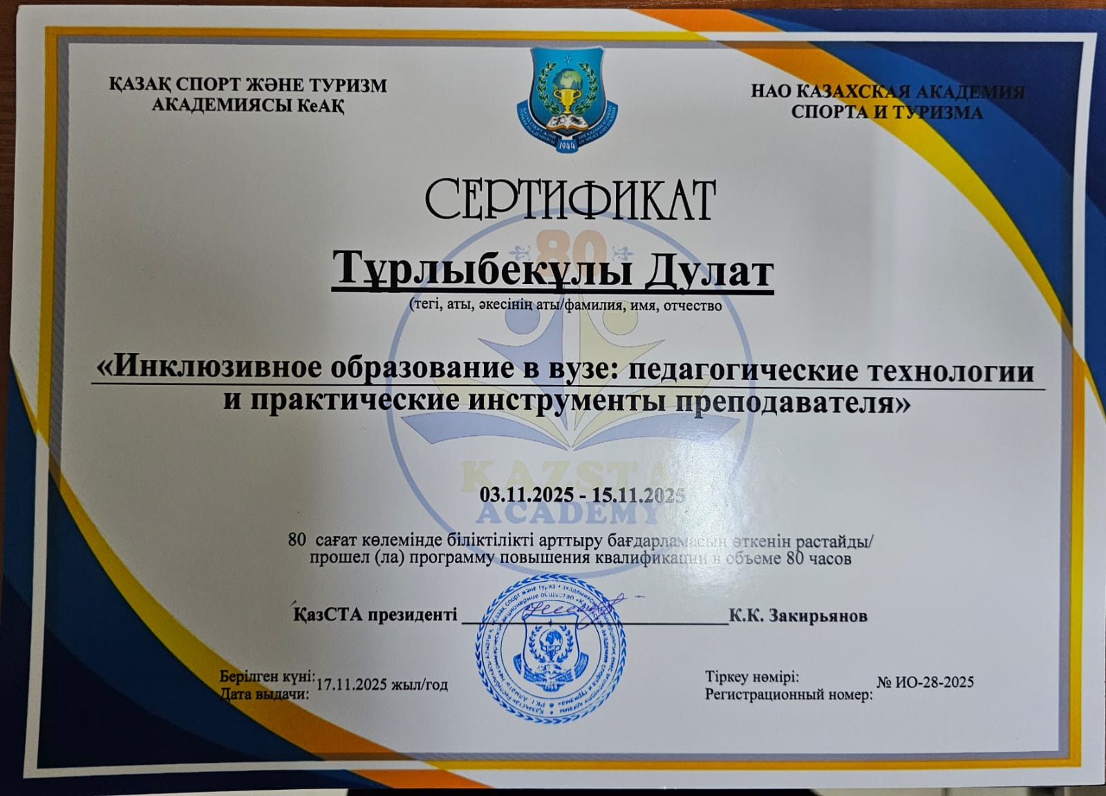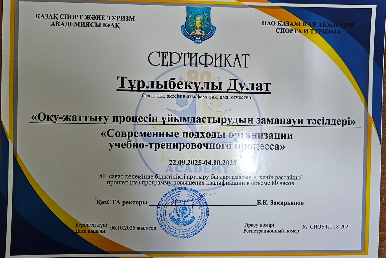Дулат Тұрлыбекұлы біліктілігін арттыру