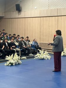Оқу-танысу практикасынының аясында, қорытынды конференциясына Алматы қаласы 119 мектеп гимназиясынының зерттеуші ұстазы дене шынықтыру пәнінің мұғалімі Керимбекова Айгерім Турдалиевна шақырылды. 1 курс студенттерімен өз тәжірбиесімен бөлісіп болашақ ұстаздардың еңбек жолымен таныстырып, оқу-танысу практикасының негізгі міндеті жас педагог студенттерді болашаққа бағыт бағдар беру беріп,оқушы мен мұғалім арасындағы байланысты сезіндіре білу және жас