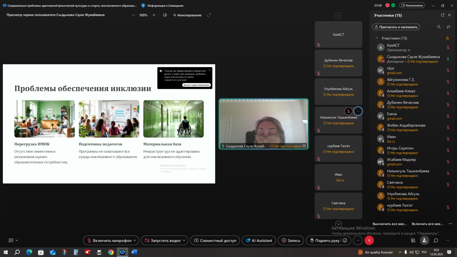 В НАО «Казахская академия спорта и туризма», Алматы, в период с 28.04. по 14.05. 2025 года, в онлайн формате (онлайн – платформа WEBEX) прошел курс повышения квалификации для учителей физической культуры общеобразовательных и коррекционных школ, школ – интернатов, ДЮСШ, педагогов и инструкторов АФК, тренеров адаптивного спорта по теме: «Современные проблемы адаптивной физической культуры и спорта, инклюзивного образования» (в объёме 80 часов с выдачей сертификата).